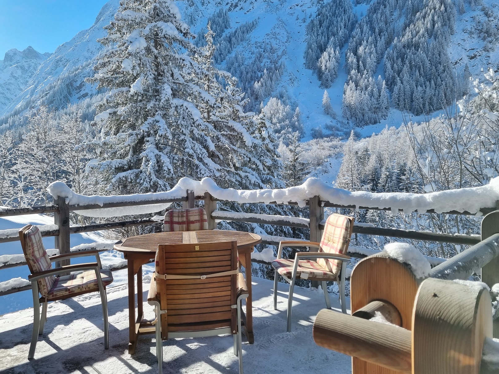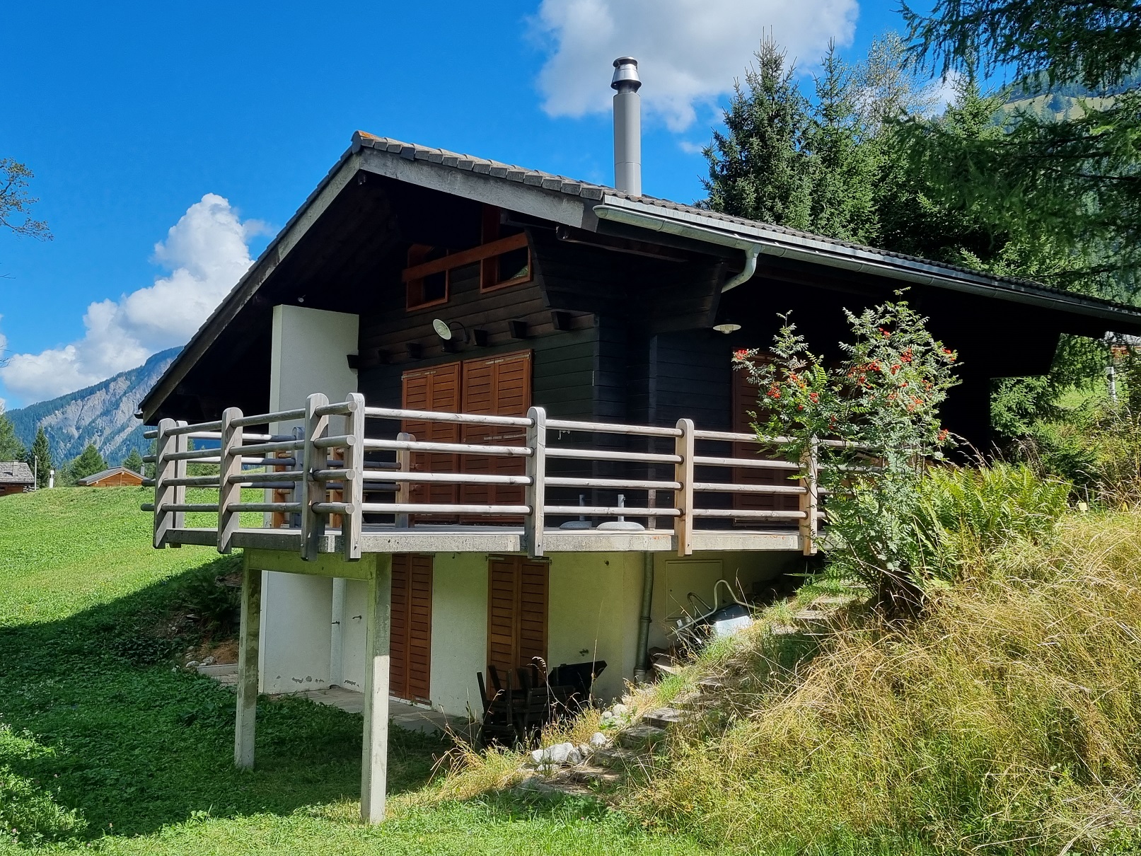 - Terrasse avec vue orientée sud-ouest, jardin autour du chalet