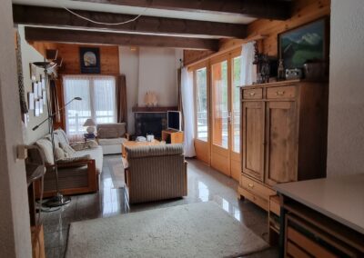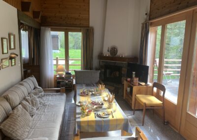 Located in the marvellous Val Ferret in the hamlet of Branche d’en Haut. Quiet location with great view on the mountains Treutze Bo and Points des Planareuse. Car and public transport access in all seasons.