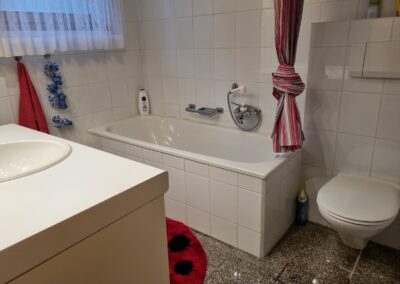 - Lower floor: 3 rooms (of which smallest one not included in rent) – two double beds – 4 persons. Bathroom with bath and toilet